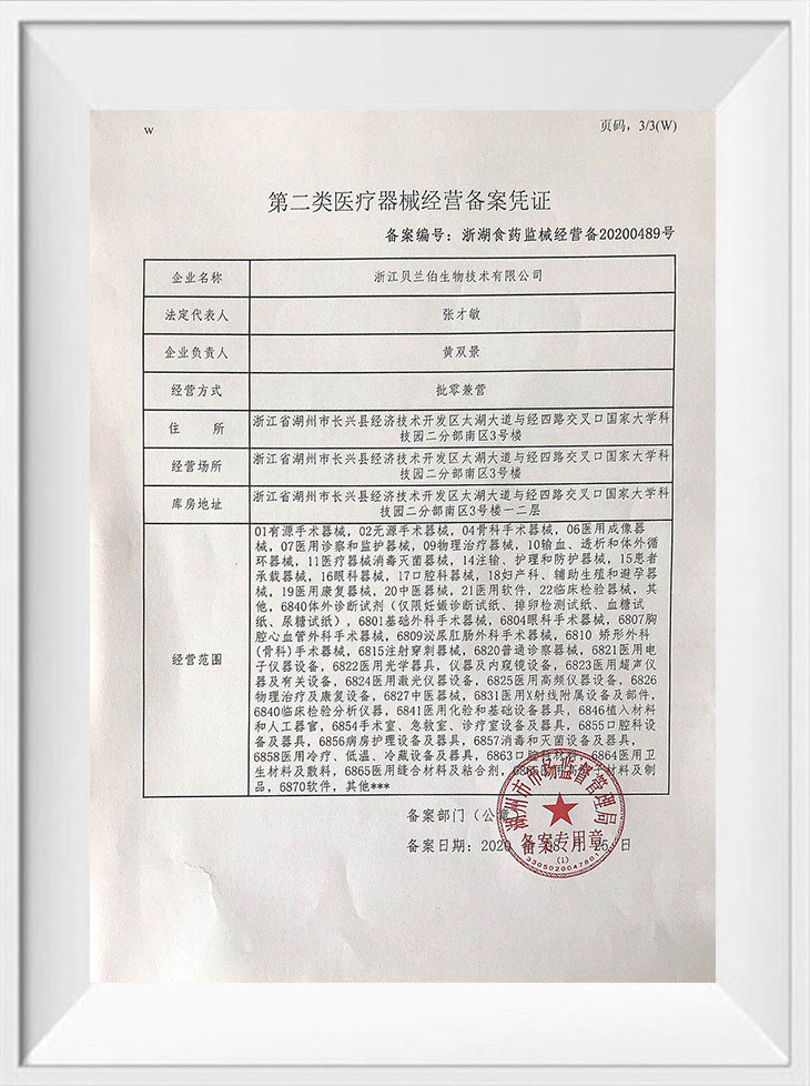 • 第二类医疗器械经营备案凭证